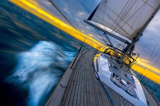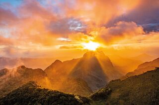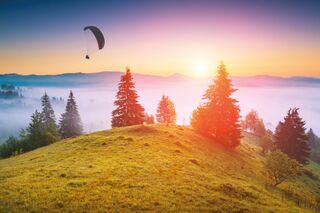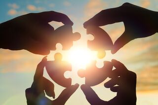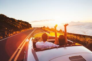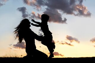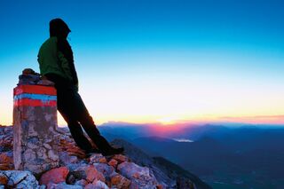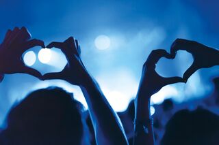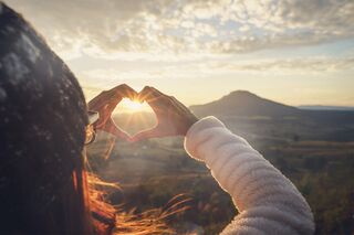 Eine Person formt ihre Hände zu einem Herzen vor dem Sonnenuntergang